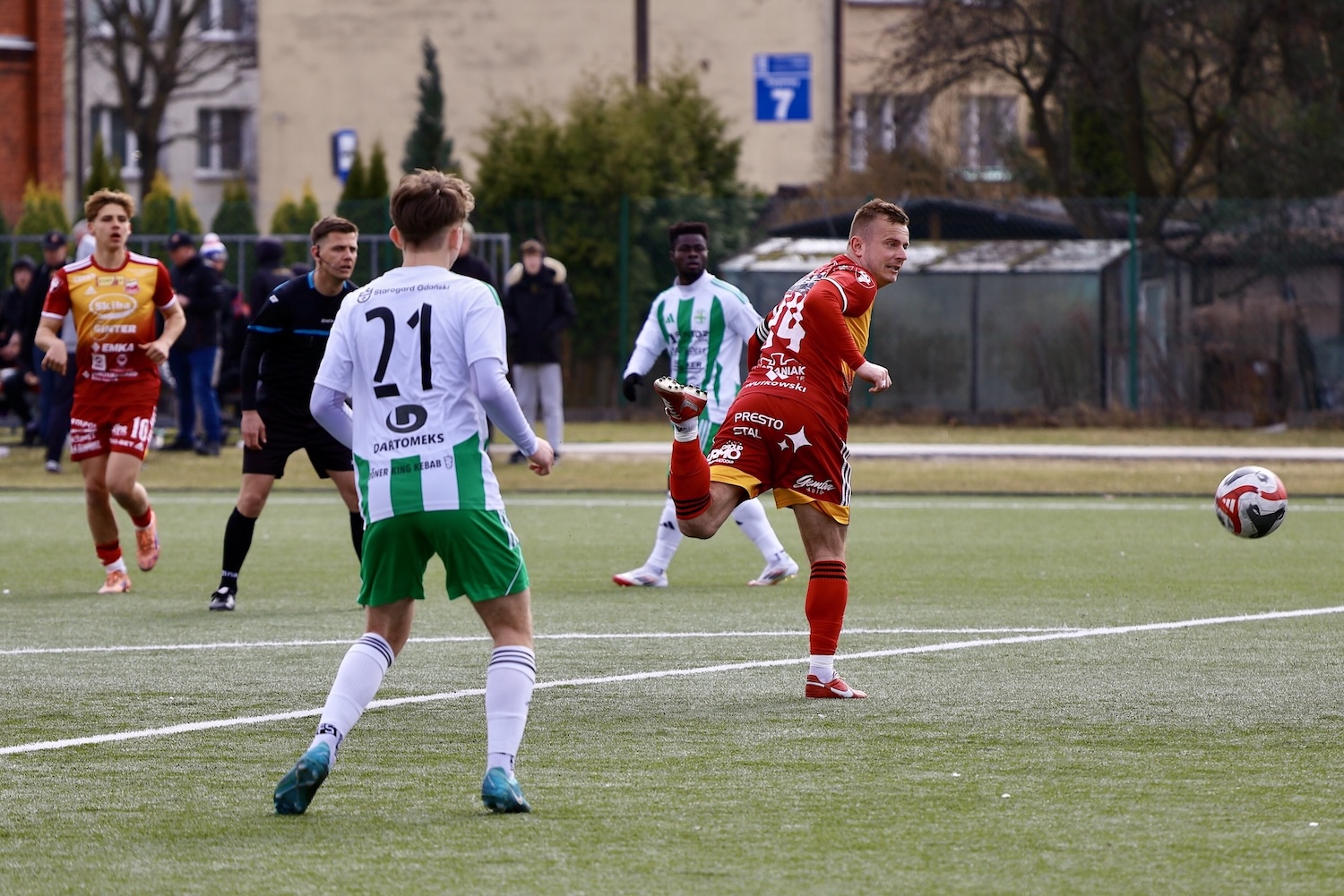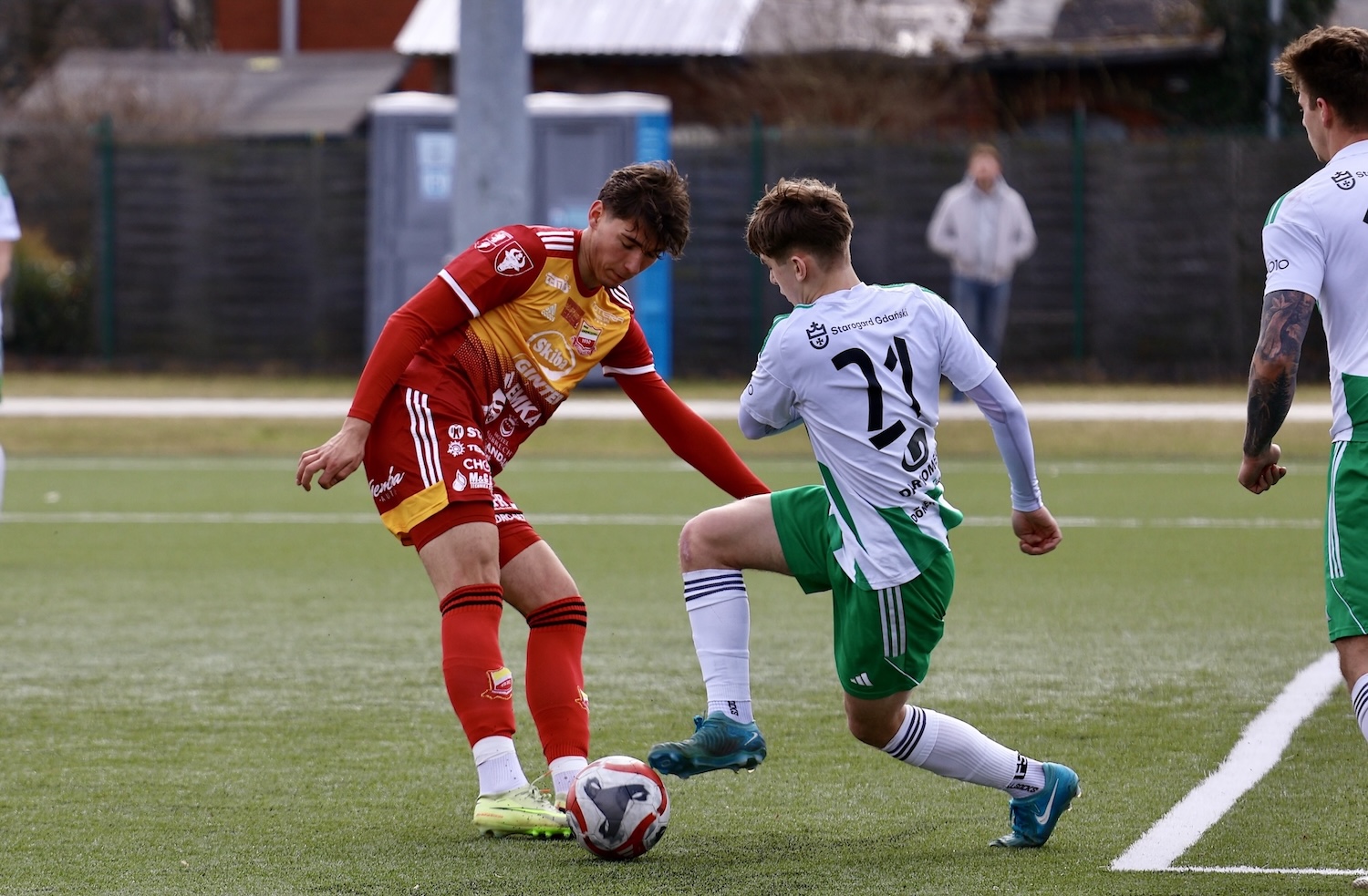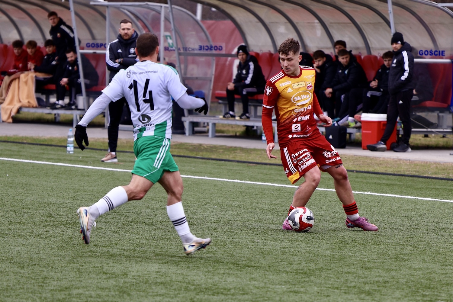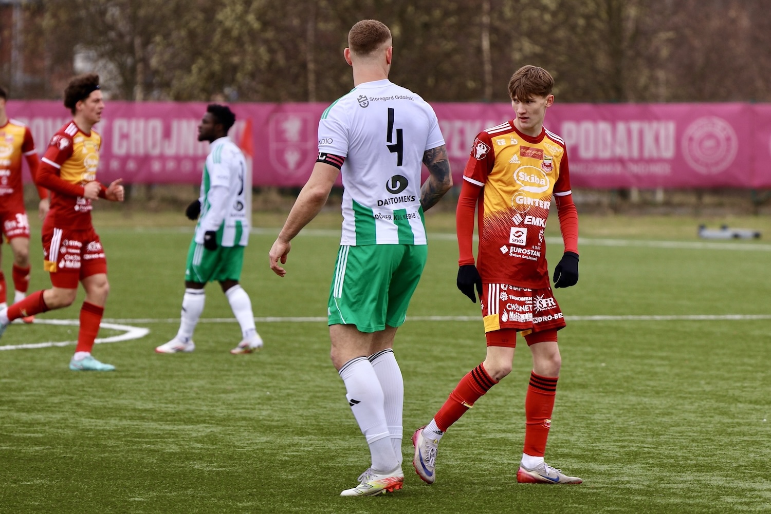 Na boisku nie brakowało jednak walki i piłkarskich emocji. Bramki dla Chojniczanki zdobyli Adrian Kacerik z rzutu karnego oraz Filip Mosek. Z kolei oba trafienia dla zespołu ze Starogardu Gdańskiego zanotował pochodzący z Chojnic Mateusz Borowski, syn Andrzeja Borowskiego, który był najskuteczniejszym zawodnikiem gości.