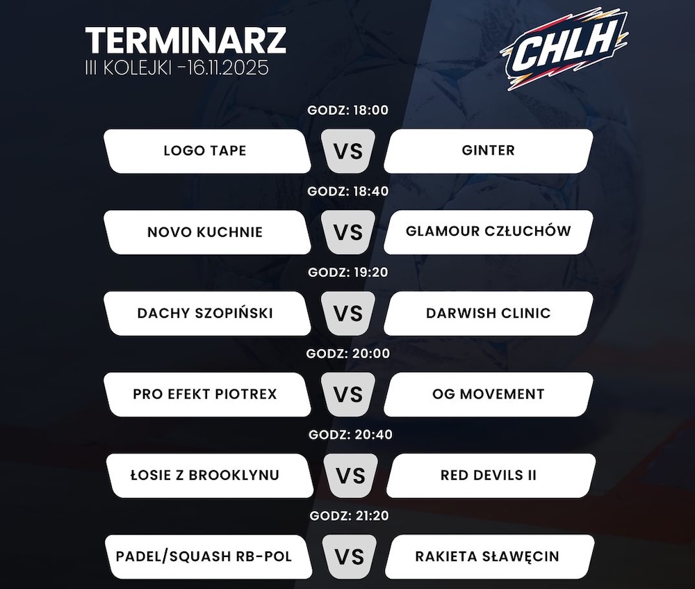 W niedzielę, 16 listopada, III kolejka Chojnickiej Ligi Halowej. Pierwszy gwizdek, godzina 18:00. Przed nami kolejna porcja intensywnych, halowych emocji, a pełny terminarz najbliższych spotkań znajdziecie na grafice poniżej.